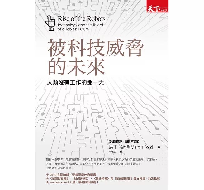 「自盧德份子以降,悲觀之士相信,科技會摧毀工作,但截至目前為止的事實證明這種看法並不正確。馬丁‧福特在本書中詳盡地分析何以現今的自動化科技對就業的顛覆破壞力將遠遠更甚於以往的科技創新,這是一本凡是關心工作前途者必讀之作。」―羅伯.史基德爾斯基(Lord Robert Skidelsky)英國華威大學(University of Warwick)政治經濟學榮譽教授,凱因斯三冊傳記作者